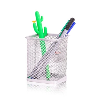 Pojemnik na długopisy metalowy kwadratowy srebrny