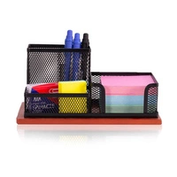 Organizer na biurko metalowy 3 komory z drewnem czarny
