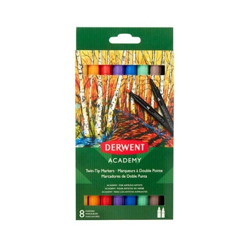Flamastry dwustronne Derwent Academy z pędzelkiem 8 kolorów