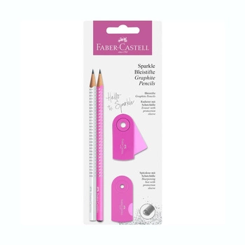 Zestaw Faber Castell ołówek temperówka gumka Sparkle Pearly Sleeve różowy