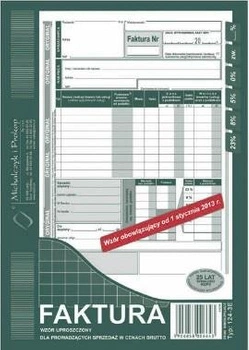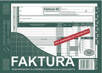 Faktura VAT wzór uproszczony dla prowadzących sprzedaż w cenach brutto A5 oryginał + kopia