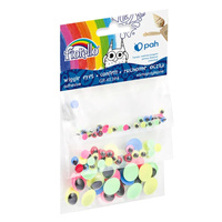 Dżety, Konfetti, Naklejki, Patyczki, Pianki, Piórka ozdobne, Pistolety do kleju, Pompony, Rozetki, Ruchome oczka, Sznurki, Taśmy dekoracyjne, Zestawy kreatywne