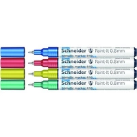 Marker akrylowy Schneider Paint-It Metallic 0,8mm 4 kolory (niebieski czerwony żółty zielony)