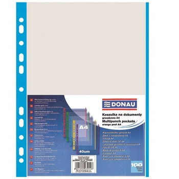 Koszulki na dokumenty Donau A4 groszkowe z kolorowym brzegiem niebieski