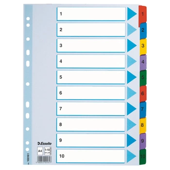Przekładki do segregatora A4 numeryczne kartonowe 1-10 Esselte Mylar