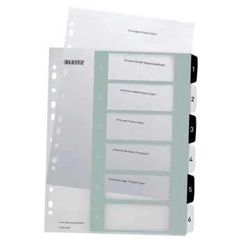 Przekładki do segregatora A4 PP numeryczne 1-6 szare Esselte