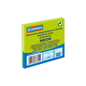 Karteczki samoprzylepne 76x76mm Donau neonowe zielony neonowy