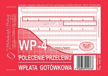 Polecenie przelewu-wpłata gotówkowa 4 odcinkowe A6 (oryginał + 3 kopie)