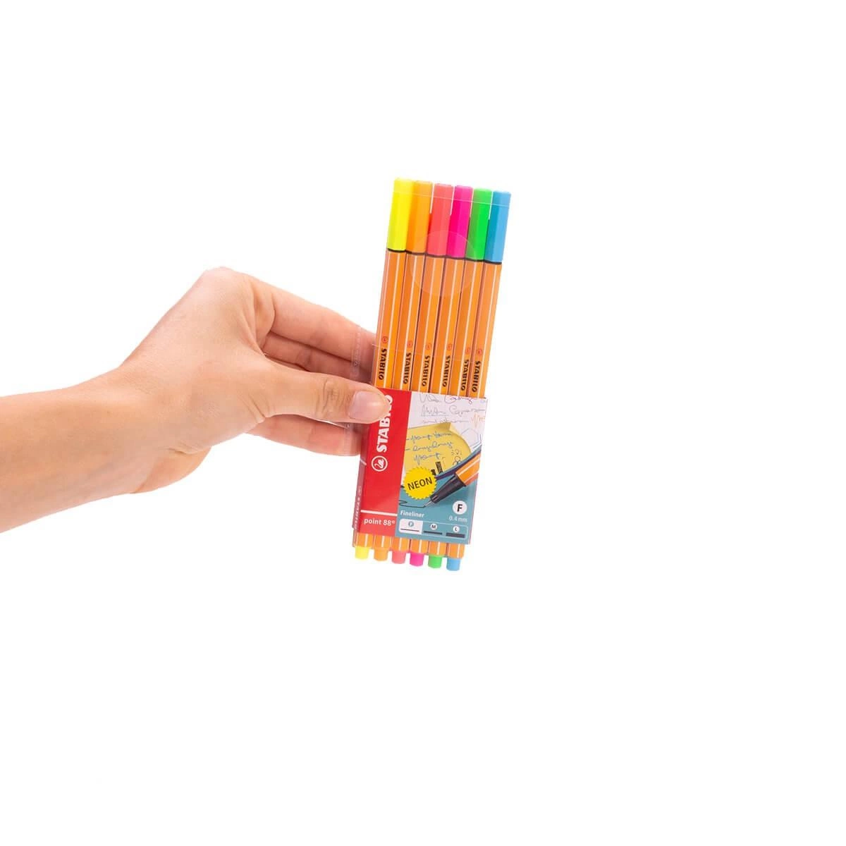 - Plastikowe etui z zawieszką zawierające 6 szt. w kolorach neonowych: różowy, jasnoróżowy, pomarańczowy, żółty, zielony, niebieski