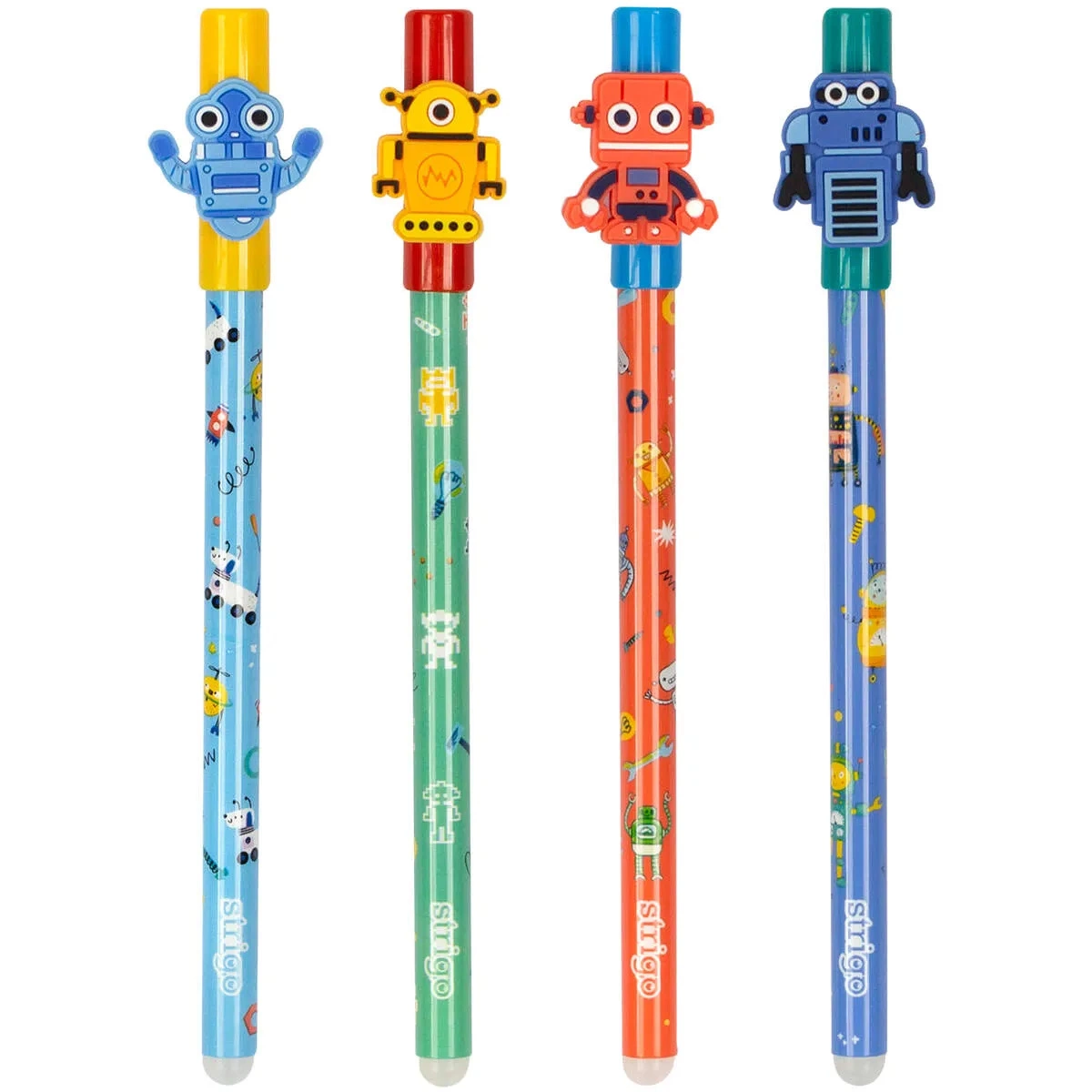 - STRIGO oferuje wymazywalny długopis ze skuwką z serii Robot, który ma wymienny niebieski wkład.