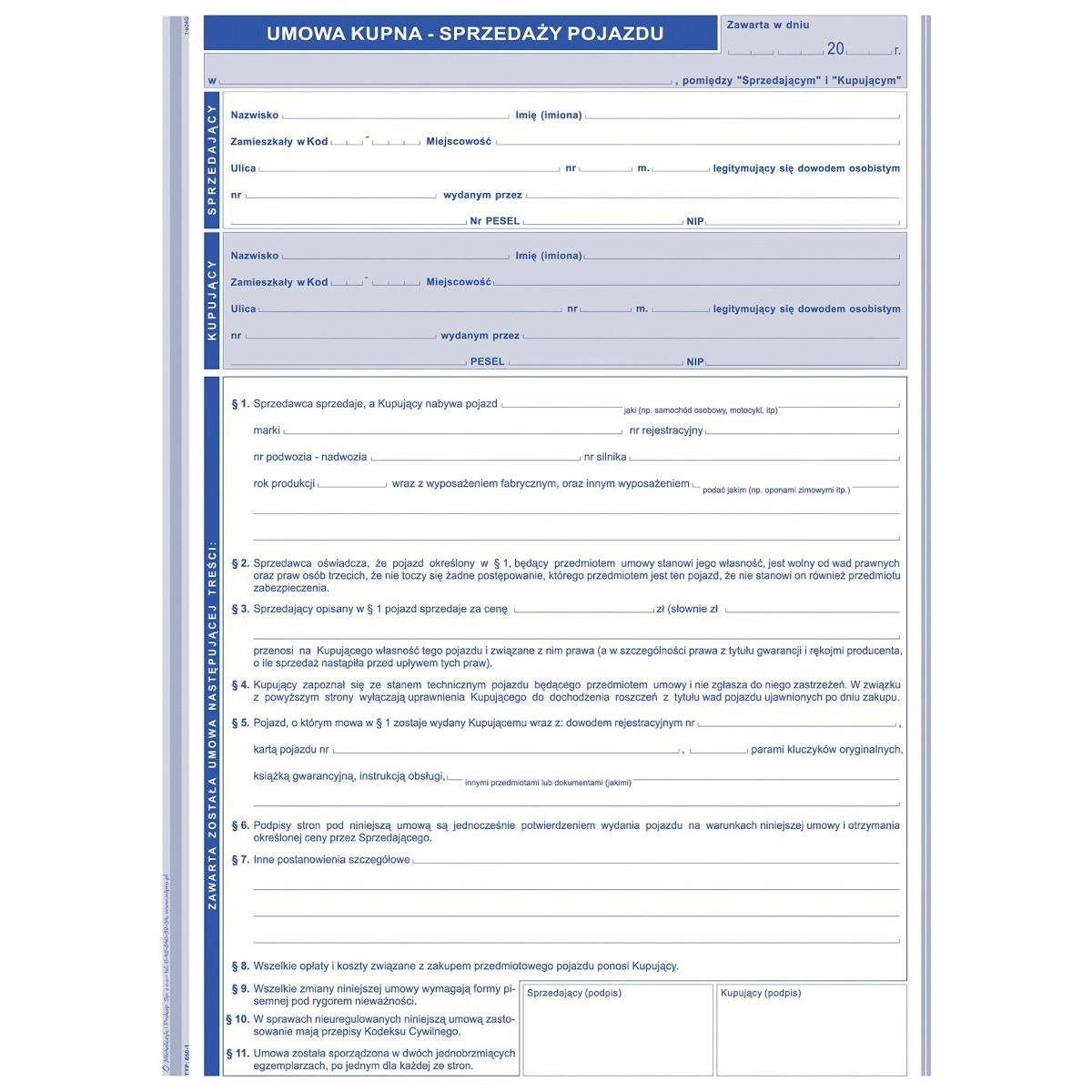 Druk umowa kupna- sprzedaży pojazdu A4 wielokopia