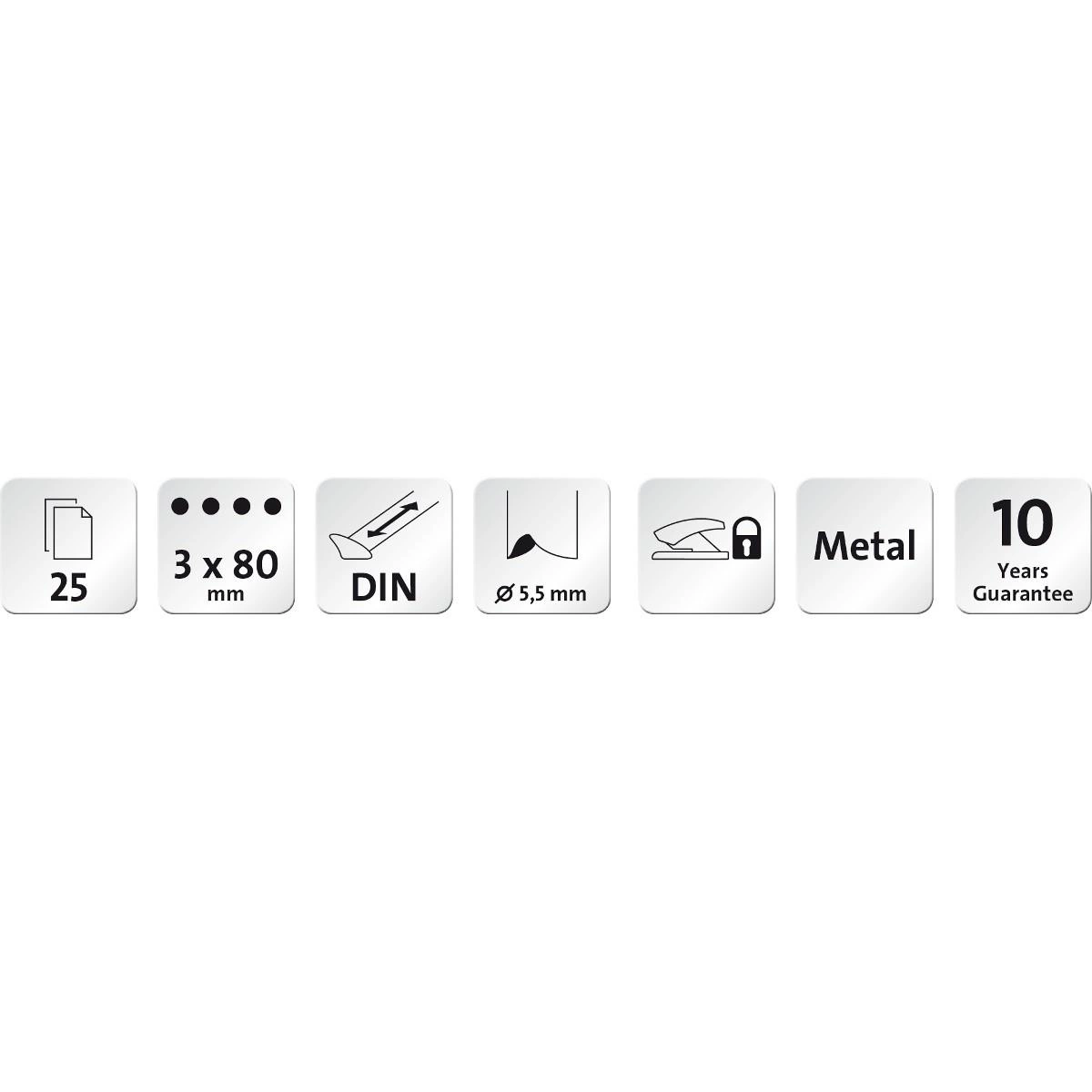- Metalowy, podwójny dziurkacz z blokadą i ogranicznikiem formatu do wszystkich popularnych formatów DIN