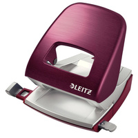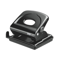 - Niewielkich rozmiarów dziurkacz z uchwytem wykonanym ze wzmocnionego plastiku, z metalową podstawą