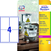 - Etykiety samoprzylepne wykonane z białego poliestru.