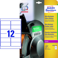 - Etykiety samoprzylepne wykonane z białego poliestru.
