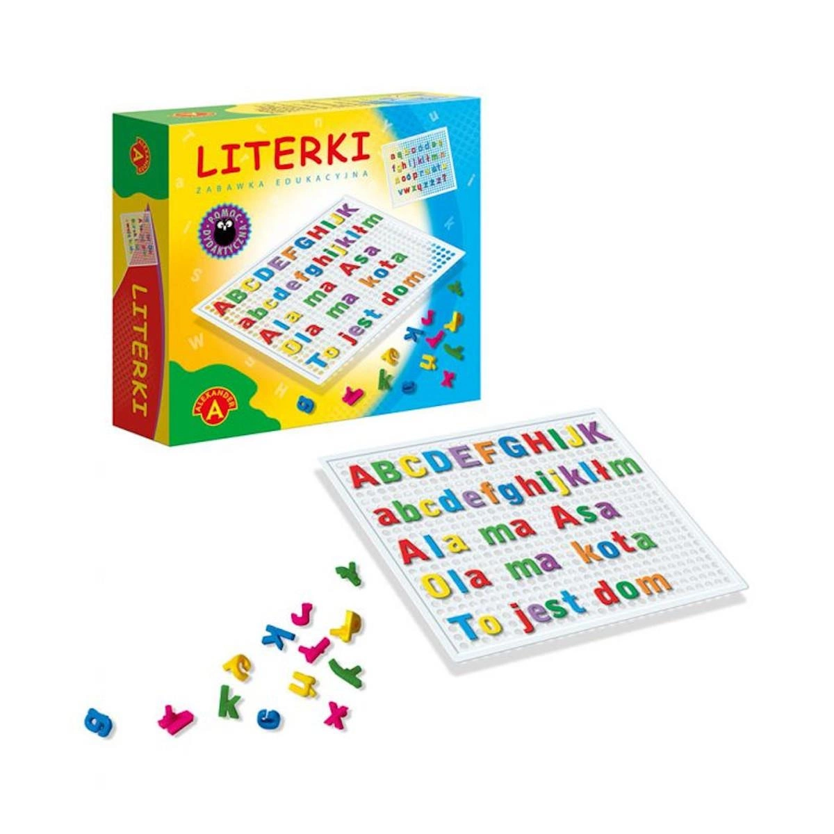 - „Literki” to zbiór małych i dużych literek, z których każda posiada element umożliwiający wpinanie ich w otwory ażurowej tablicy