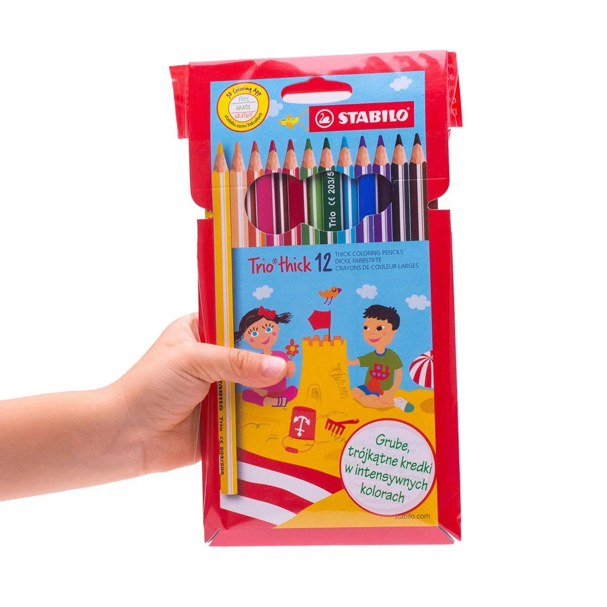 - Drewniane kredki o ergonomicznym, trójkątnym przekroju
