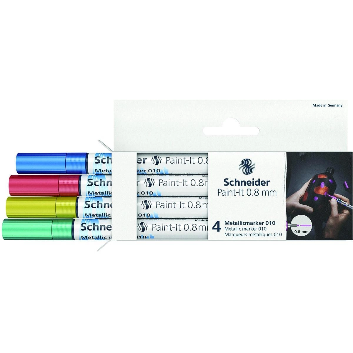 - Zestaw 4 markerów akrylowych linii PAINT-IT 010 *zestaw zawiera 4 metaliczne markery w kolorach: niebieskim, czerwonym, żółtym, zielonym