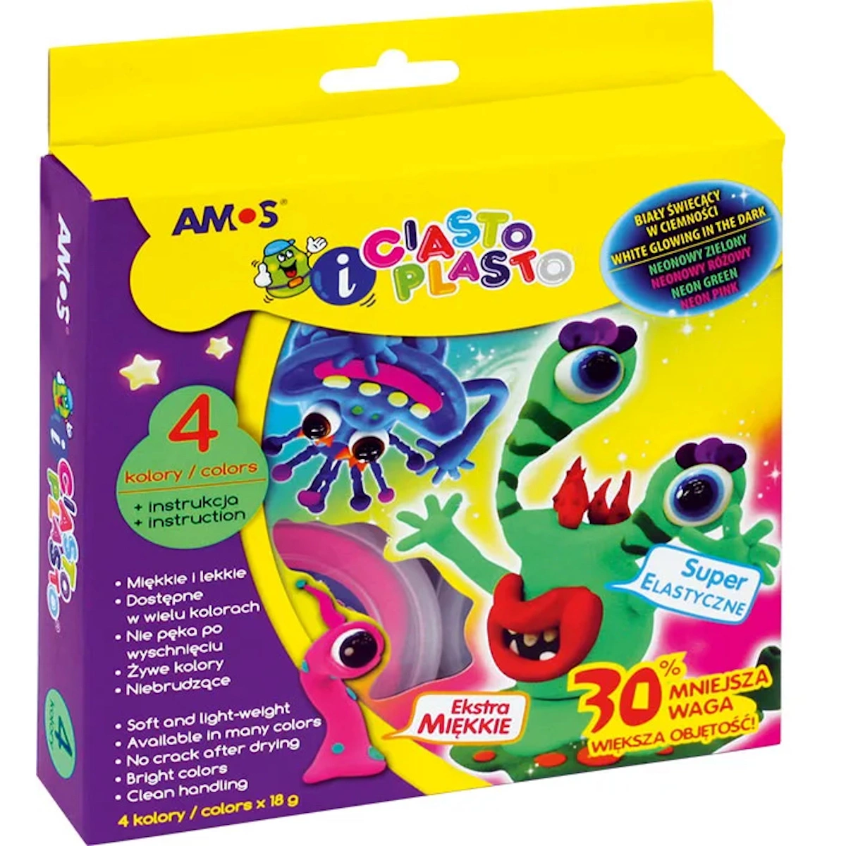 Masa plastyczna Ciasto Plasto Fluo Amos 4 kolory
