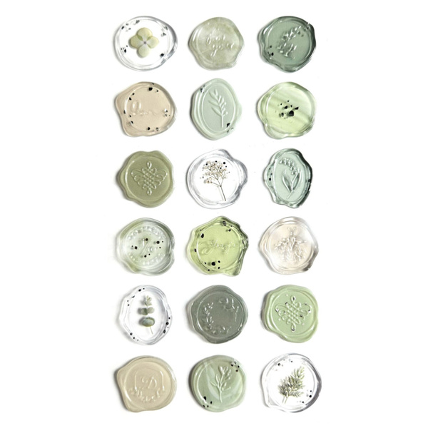 - 18 sztuk pojedynczych naklejek w formie pieczątek