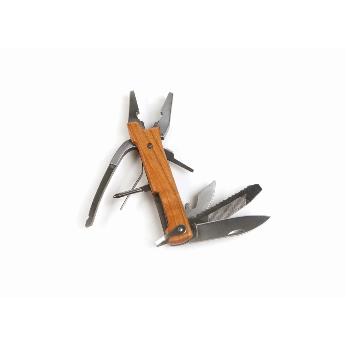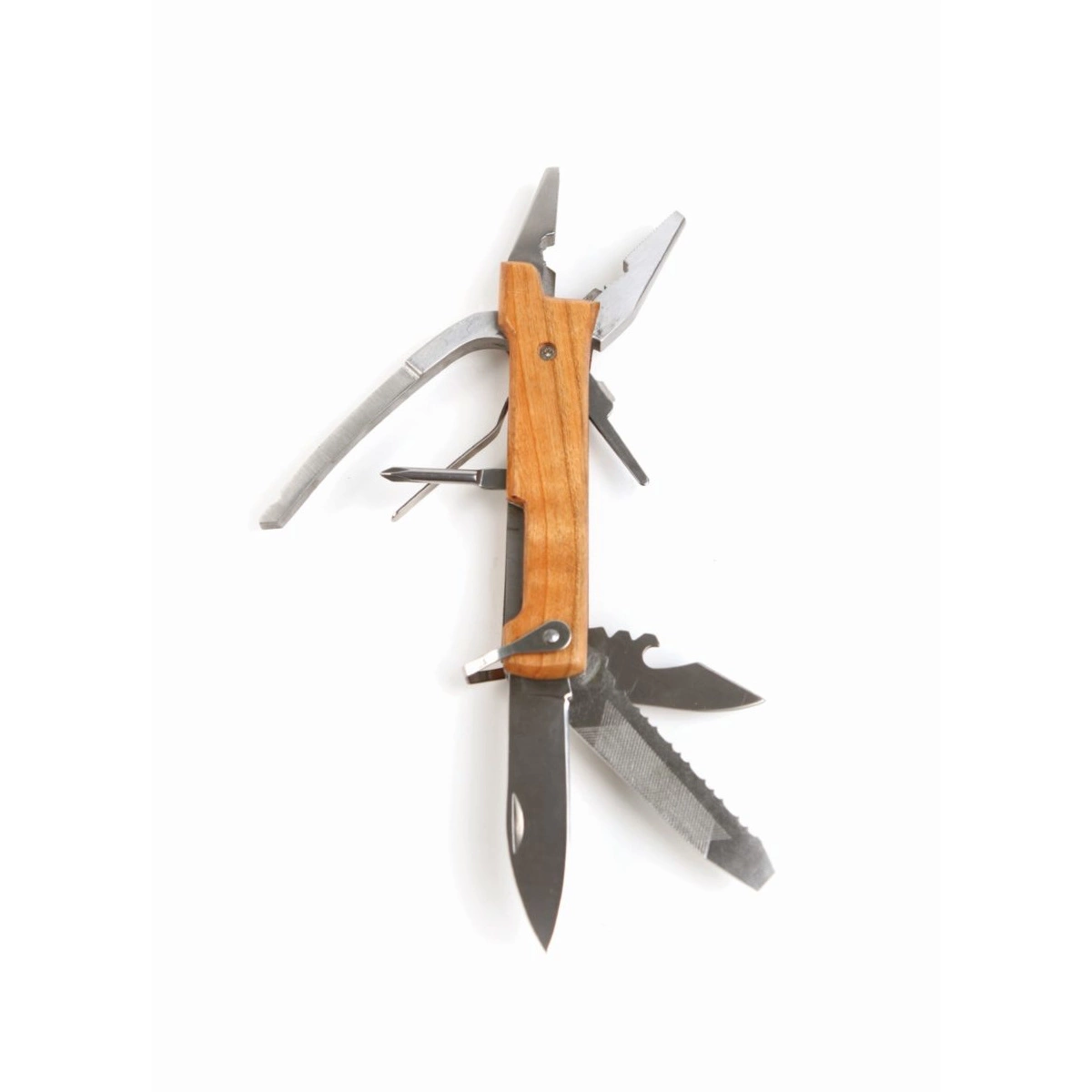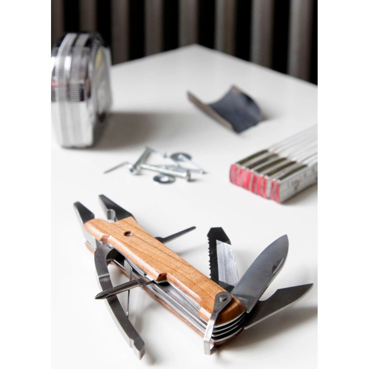 - W zestawie: kombinerki, śrubokręt płaski, otwieracz do butelek, piła, pilnik, śrubokręt krzyżakowy i nóż.