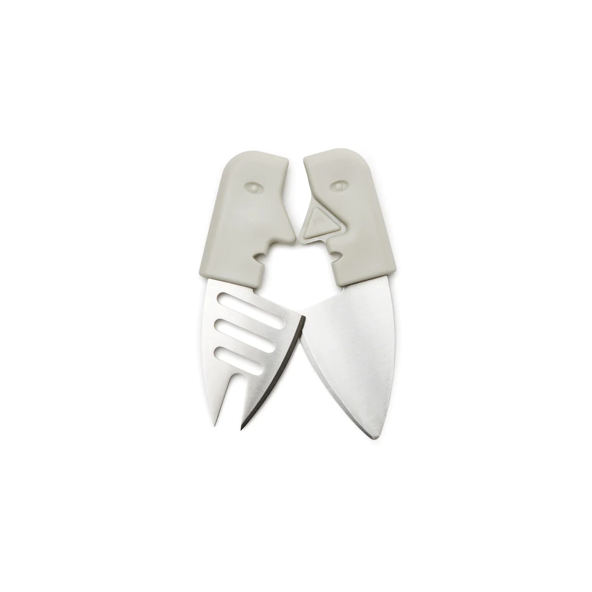 • Zestaw dwóch noży do sera: jeden do serów miękkich i jeden do serów twardych.
