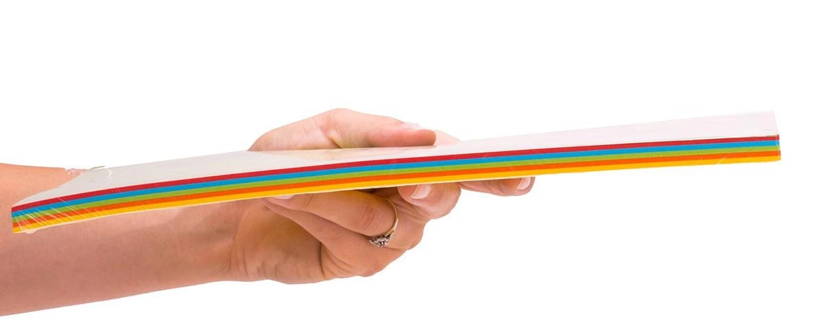 - Wymiar arkusza 210x297 mm. W opakowaniu 5 najpopularniejszych kolorów, po 14 arkuszy z koloru.