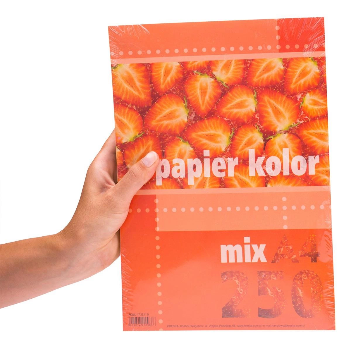 - Wymiar arkusza 210x297 mm. W opakowaniu 5 najpopularniejszych kolorów, po 50 arkuszy z koloru.