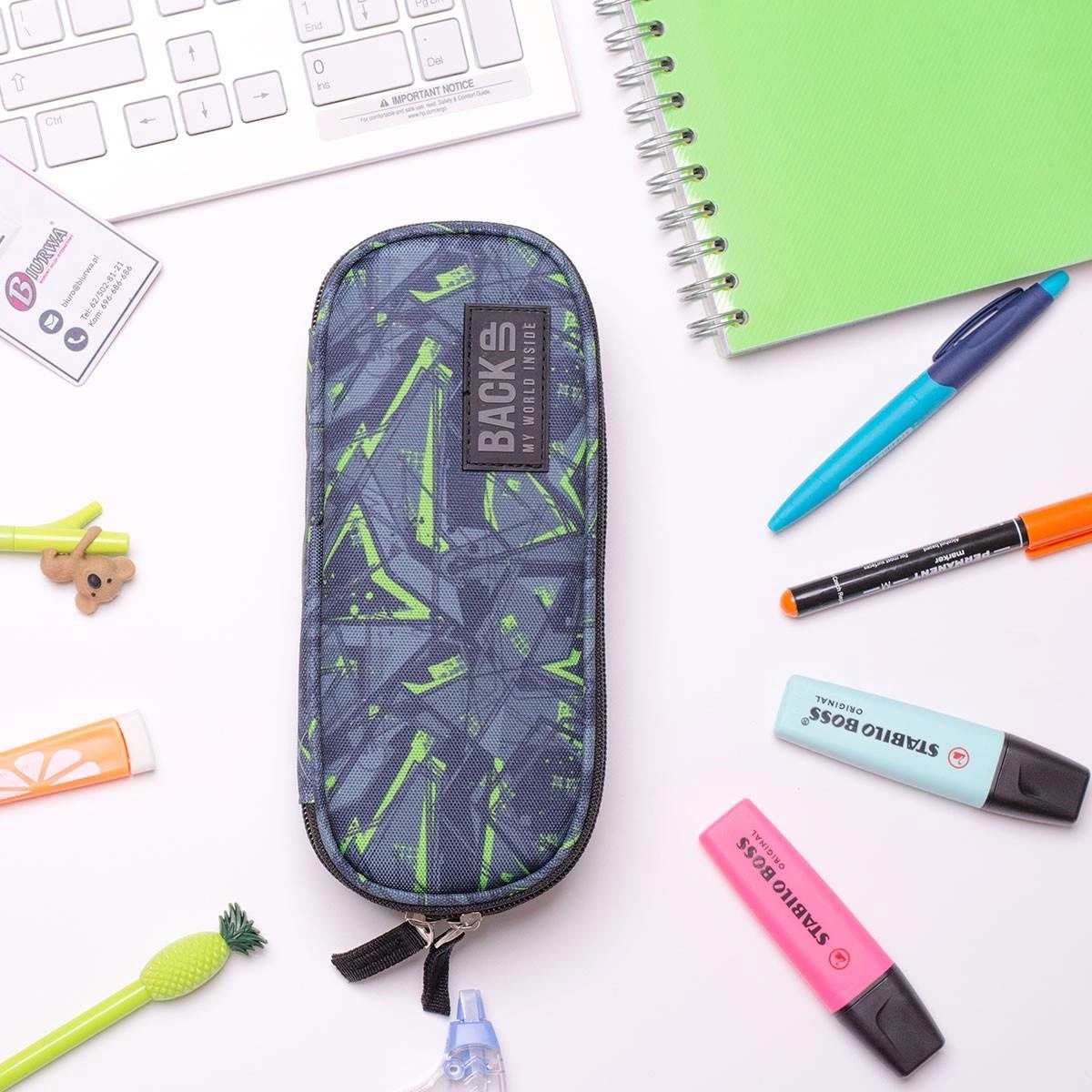 Piórnik dla młodzieży w modnych wzorach. We wnętrzu znajduje się organizer na 5 ołówków i zapinana kieszonka. Jest bardzo pojemny i pomieści też linijkę do 20 centymetrów. Piórnik może tworzyć komplet z plecakiem w tym samym kolorze.