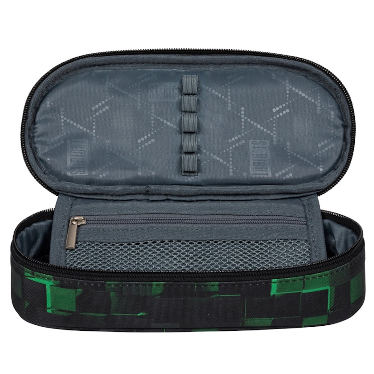 - Dodatkowa klapka z miejscem na przybory piśmiennicze oraz kieszonką zapinaną na suwak