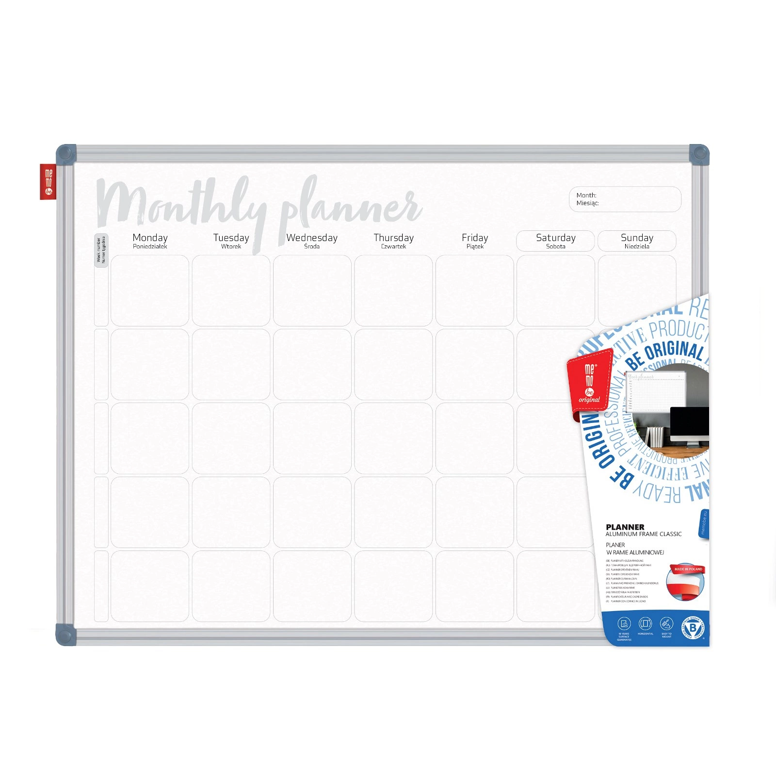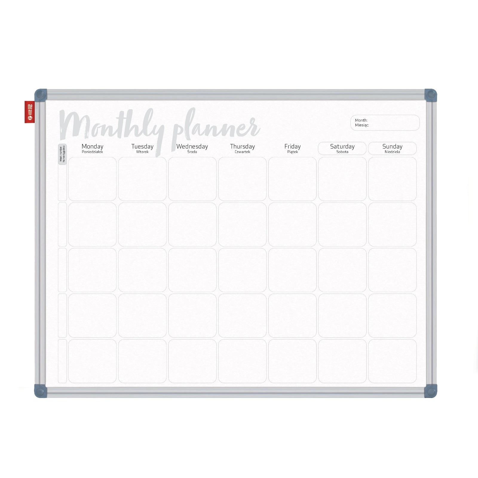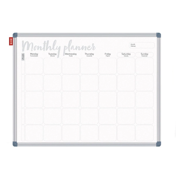 - Tablica z powierzchnią suchościeralno-magnetyczną z nadrukowanym terminarzem do planowania zadań miesięcznych