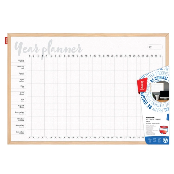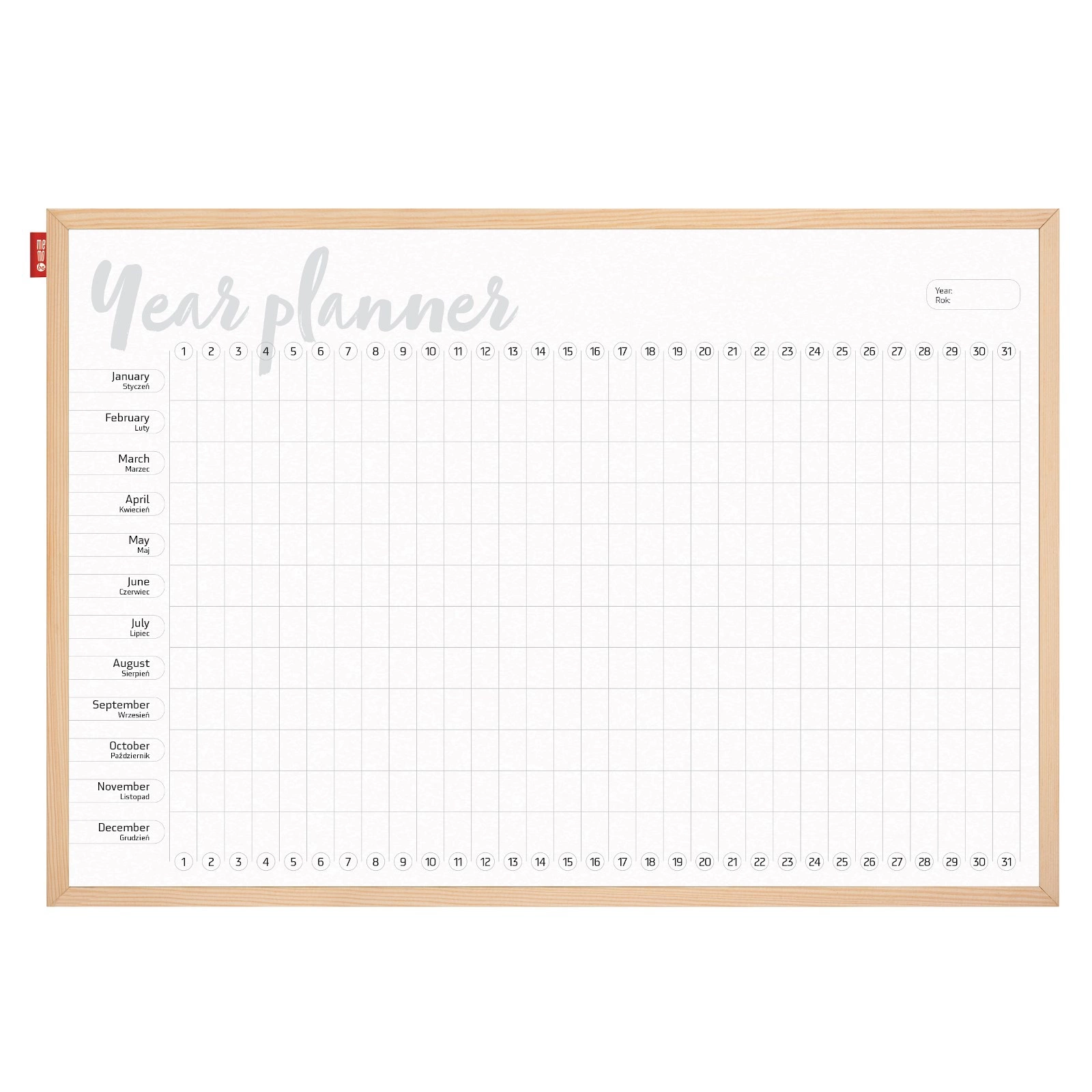 • Tablica z powierzchnią suchościeralno-magnetyczną z nadrukowanym terminarzem do planowania zadań rocznych