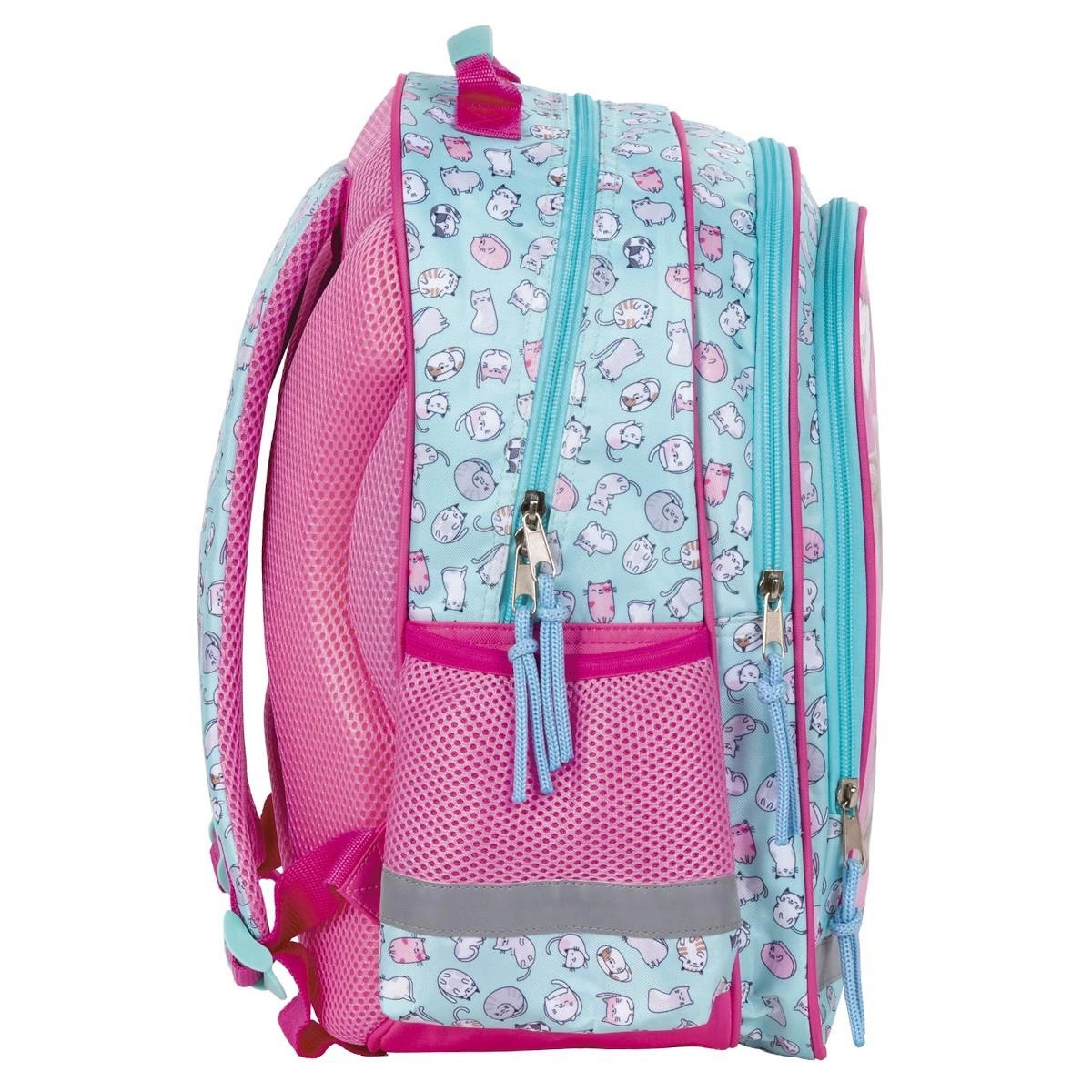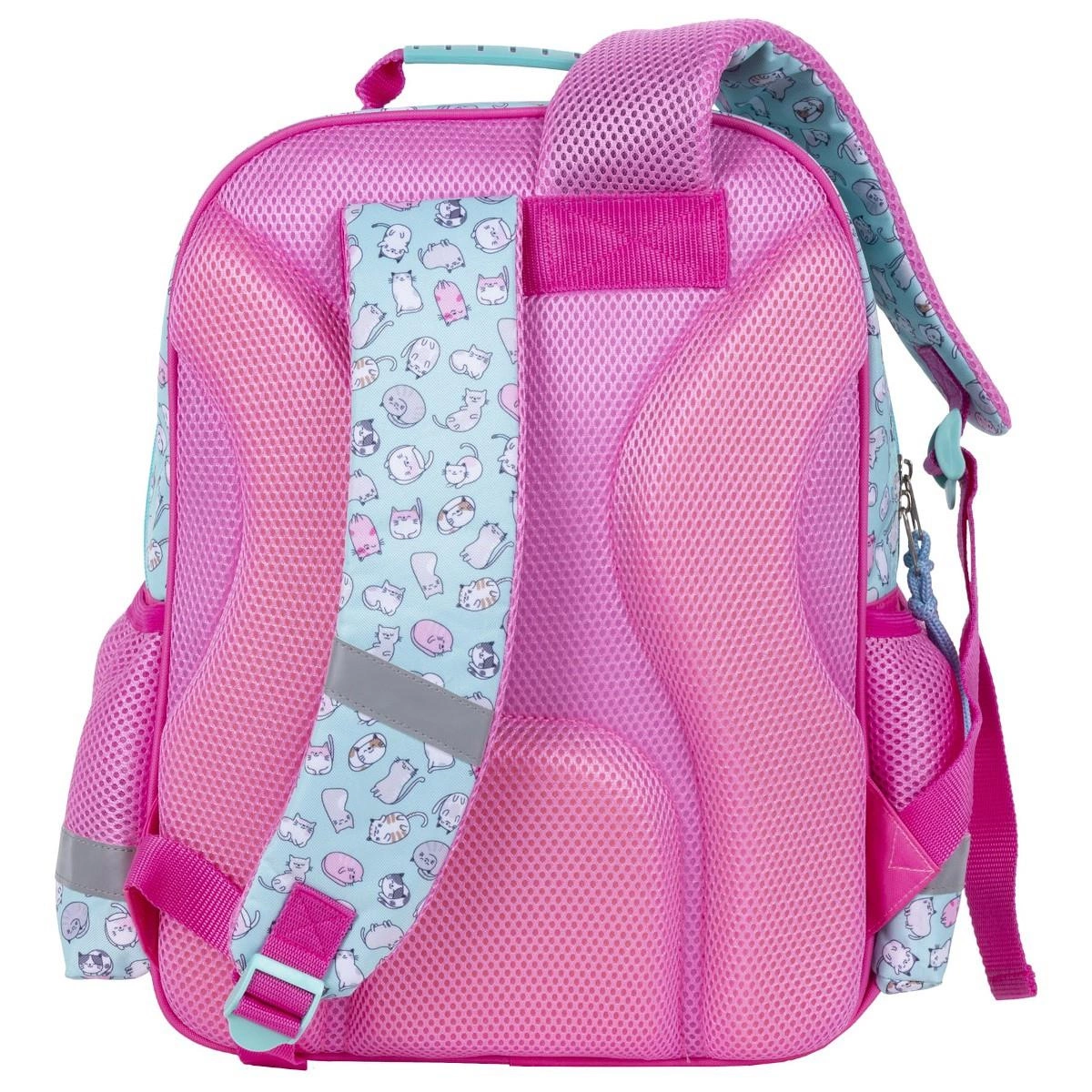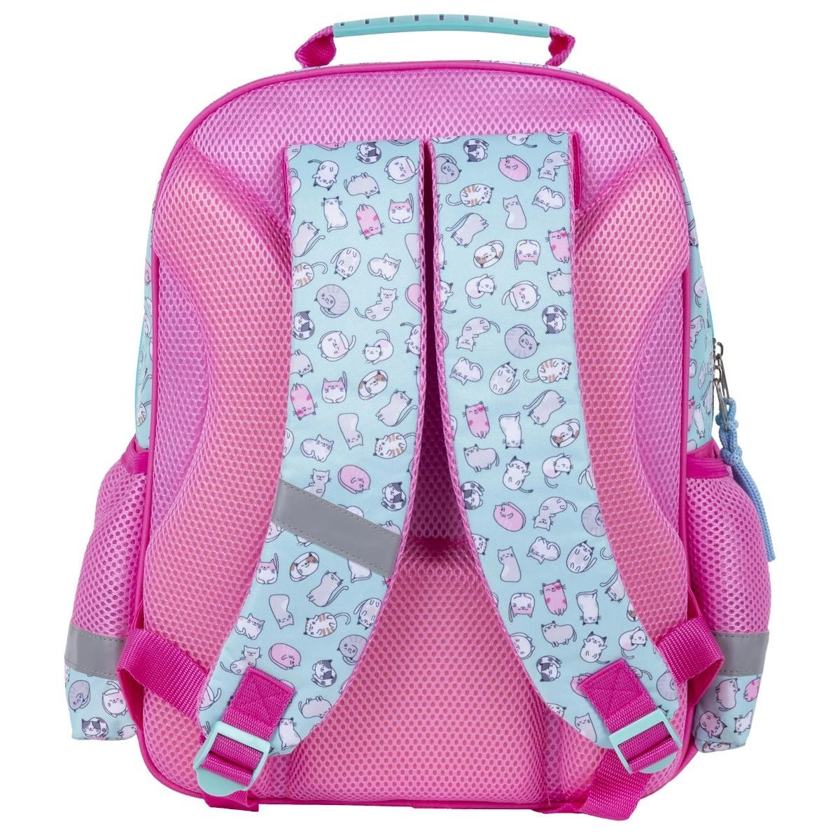 - Plecak posiada miękkie wyściełane szelki, ergonomiczne plecy, taśmy odblaskowe, wzmacnianą rączkę oraz wzmacniane dno