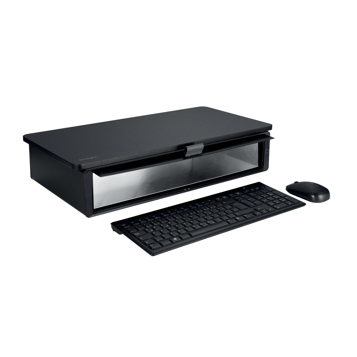 - Przestronna (508 x 279 x 89 mm) komora do dezynfekcji UVC LED (lub przechowywania) pomaga łatwo i bezpiecznie dezynfekować urządzenia i akcesoria komputerowe