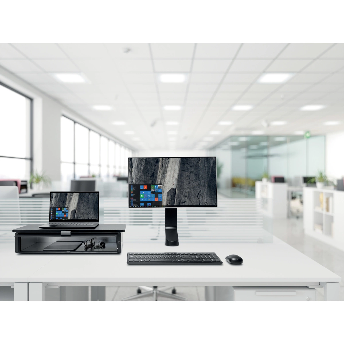 - Podstawka jest przeznaczona do monitorów o wadze do 18 kg, można na niej postawić jeden monitor o przekątnej 34 cale lub 2 monitory z przekątną 24"", promuje przyjmowanie prawidłowej postawy i zapewnia optymalny komfort podczas pracy przy komputerze