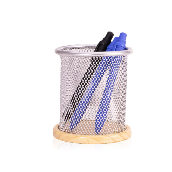 Pojemnik na długopisy metalowy z drewnem srebrny