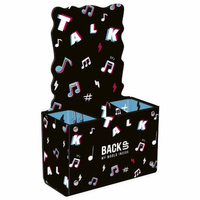 - Sztywny, wykonany z grubej, laminowanej tektury pojemnik na przybory szkolne z nadrukiem
