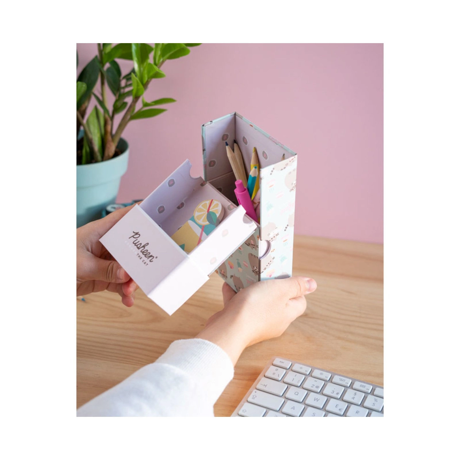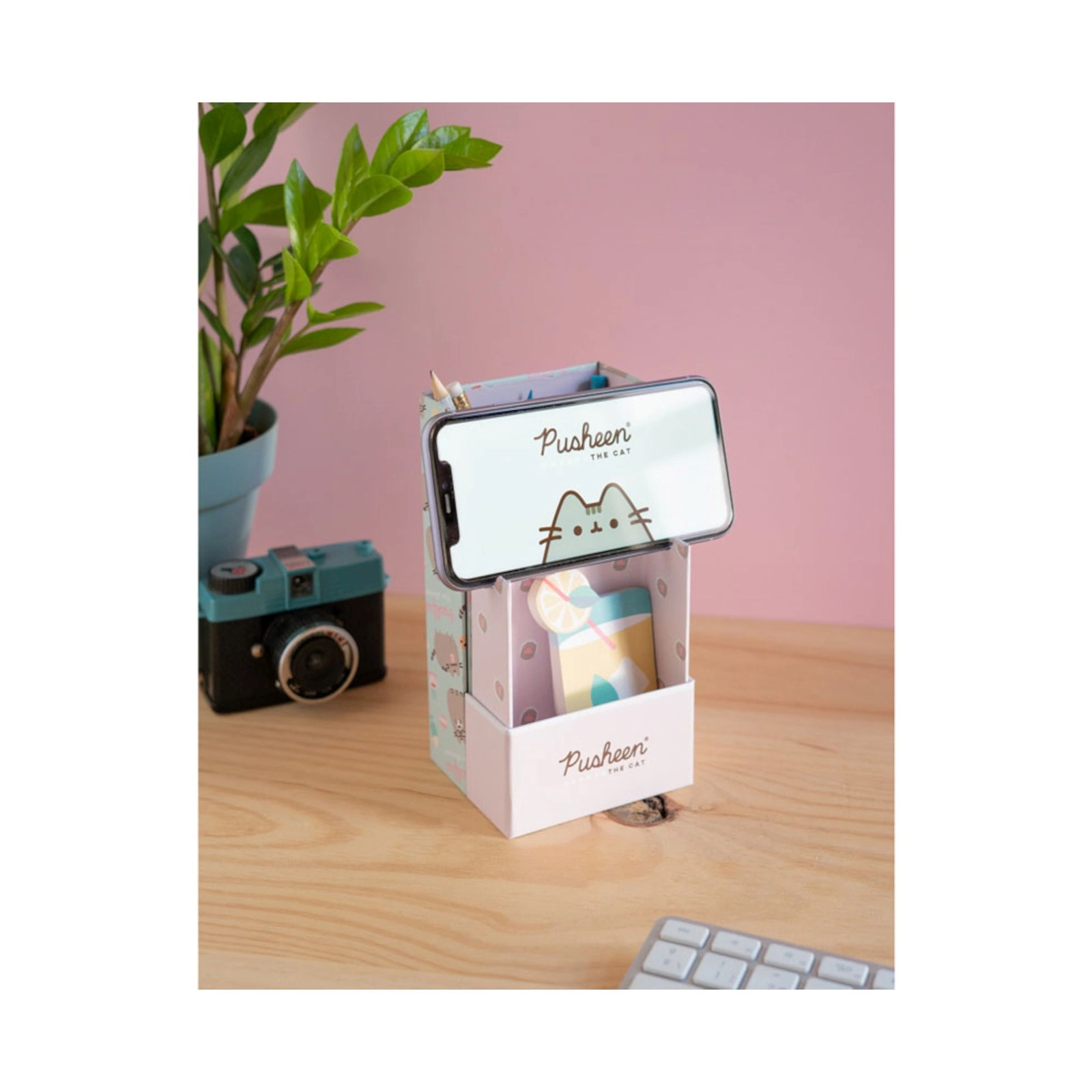 - Wielofunkcyjny przybornik Pusheen który może służyć jako organizer na biurko lub podstawka na telefon