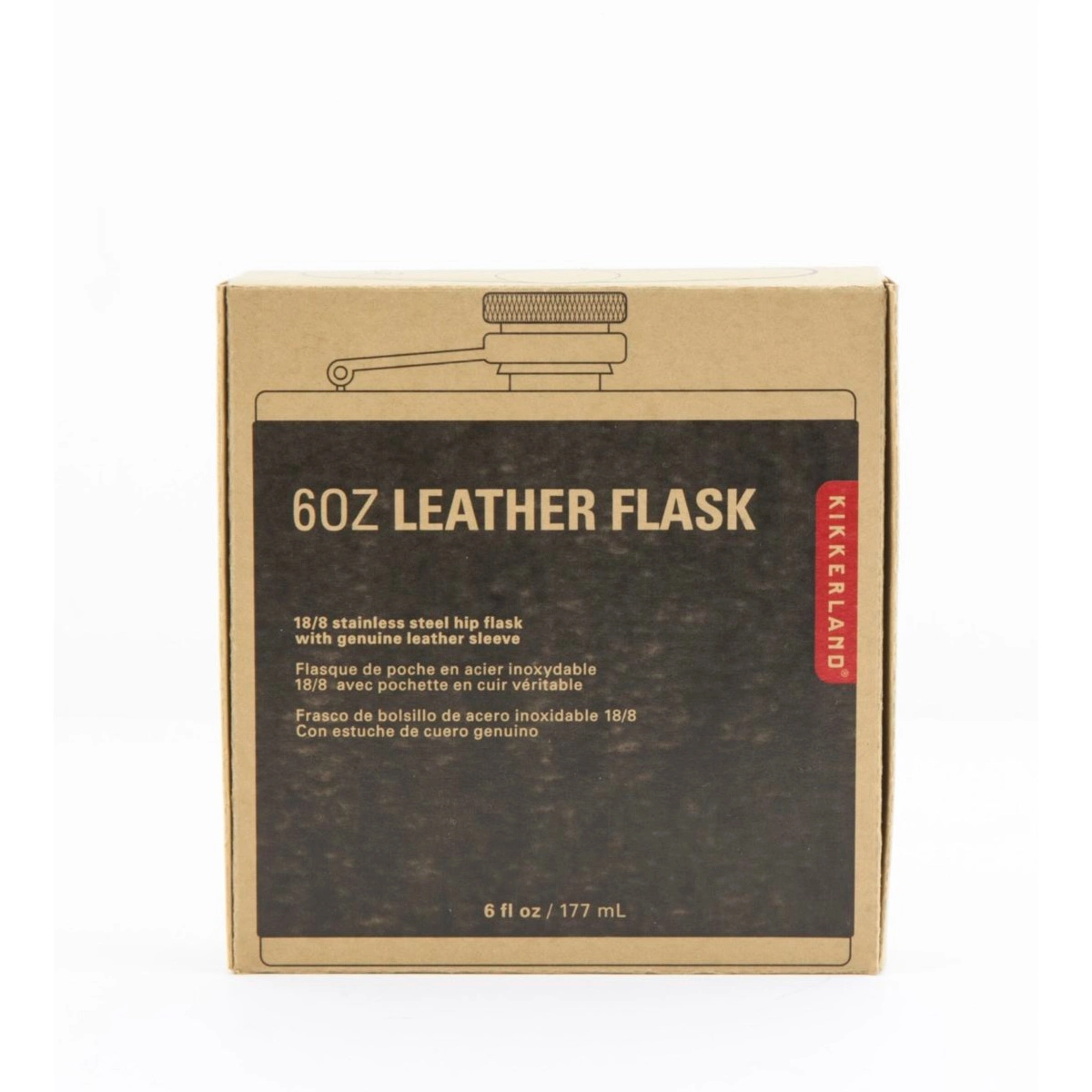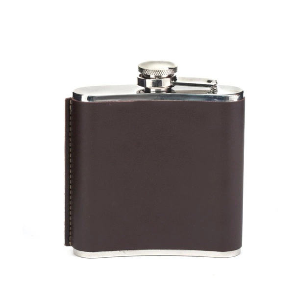 - Piersiówka wykonana ze stali nierdzewnej i skóry naturalnej.
