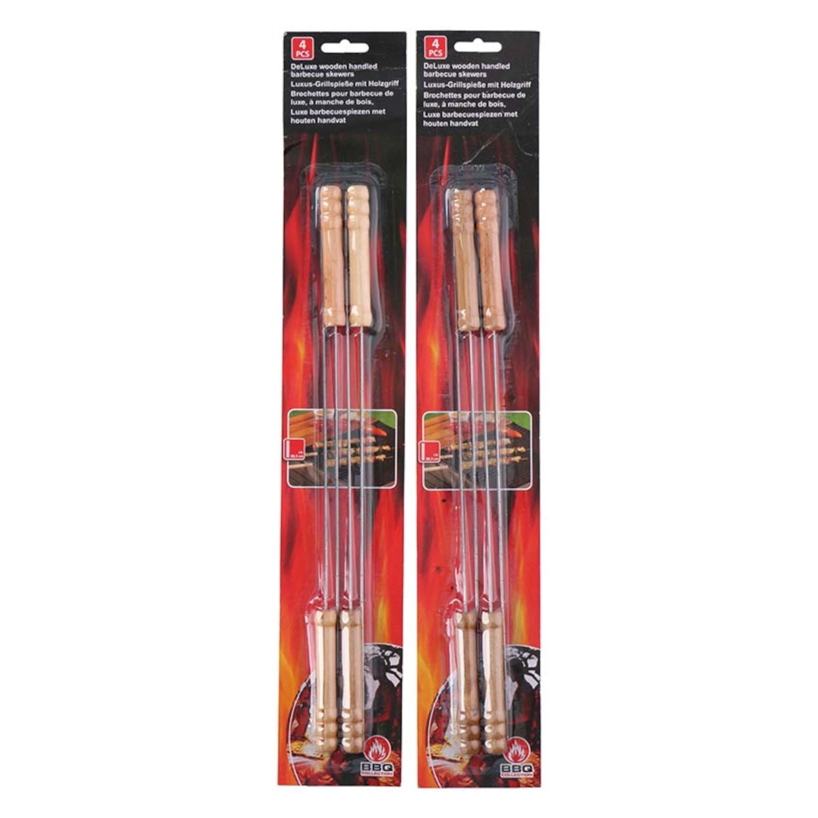 - Zestaw czterech szpikulców do grilla z drewnianą rączką marki BBQ