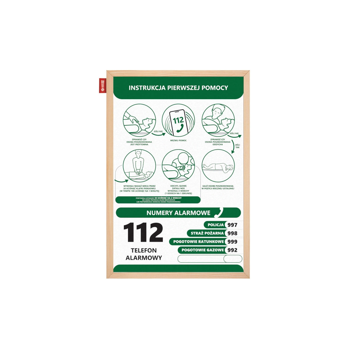 - Tablica z nadrukowaną kolorową instrukcją udzielania pierwszej pomocy i ważnymi telefonami alarmowymi, to niezbędny sojusznik w bezpieczeństwie dla każdego człowieka