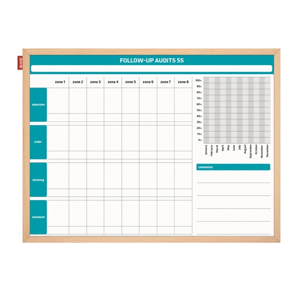 • Tablica Lean MemoBe z nadrukiem 5S Lean Board (FOLLOW-UP AUDITS 5S)