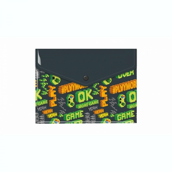 - Teczka wykonana z folii PP z pełnym, ozdobnym nadrukiem na całej powierzchni oraz klapą w kontrastowym kolorze