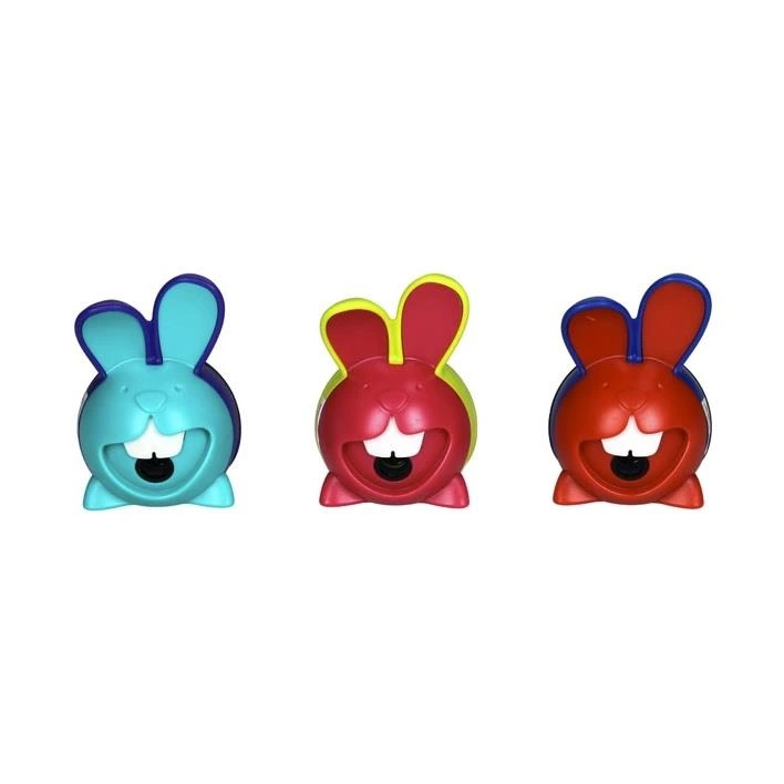 - Temperowane kredki i ołówki wprawiają w ruch białe ząbki króliczka