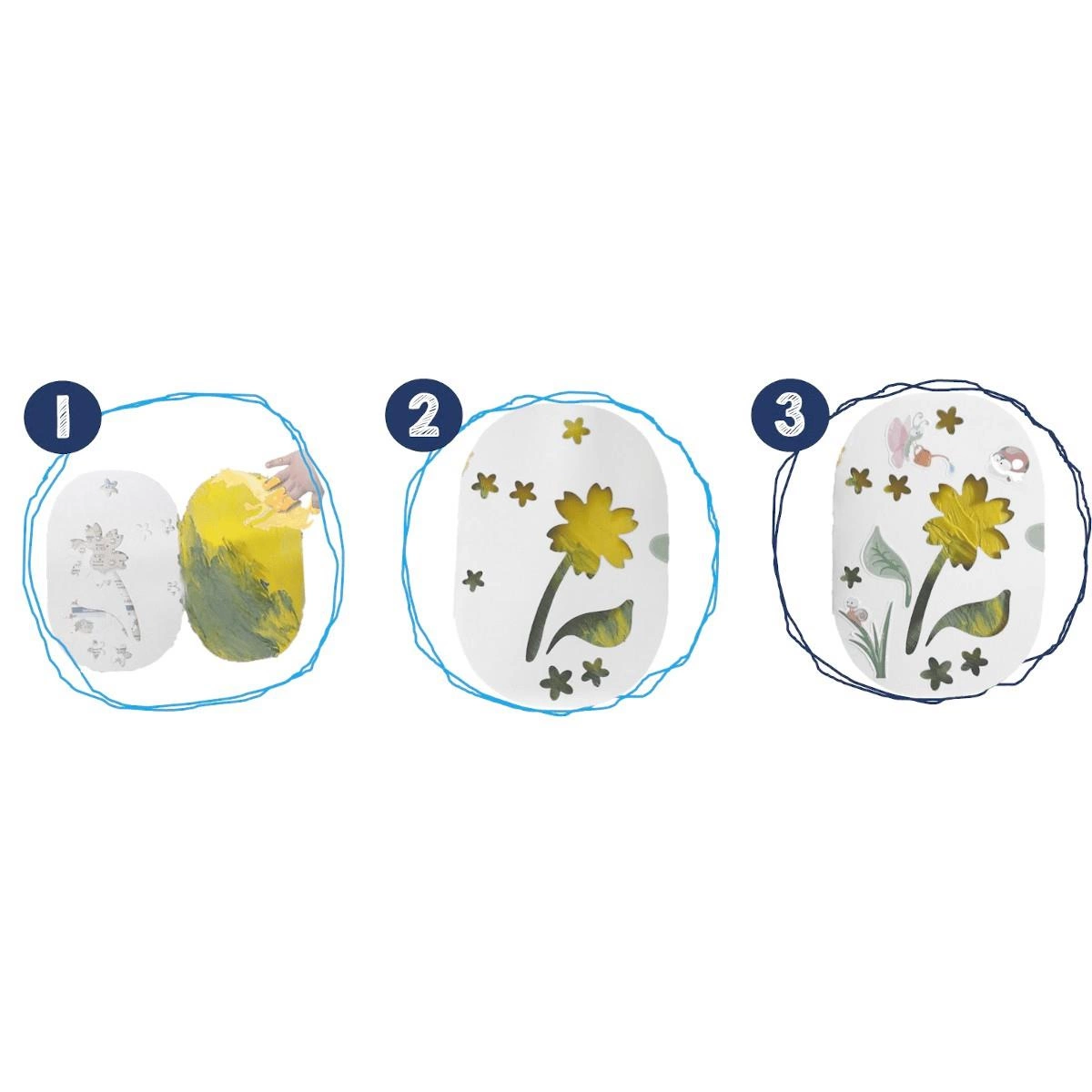 - Zawiera obrus, 2 arkusze z naklejkami, 3 tubki farby o różnych kolorach i 4 plansze gotowe do kolorowania