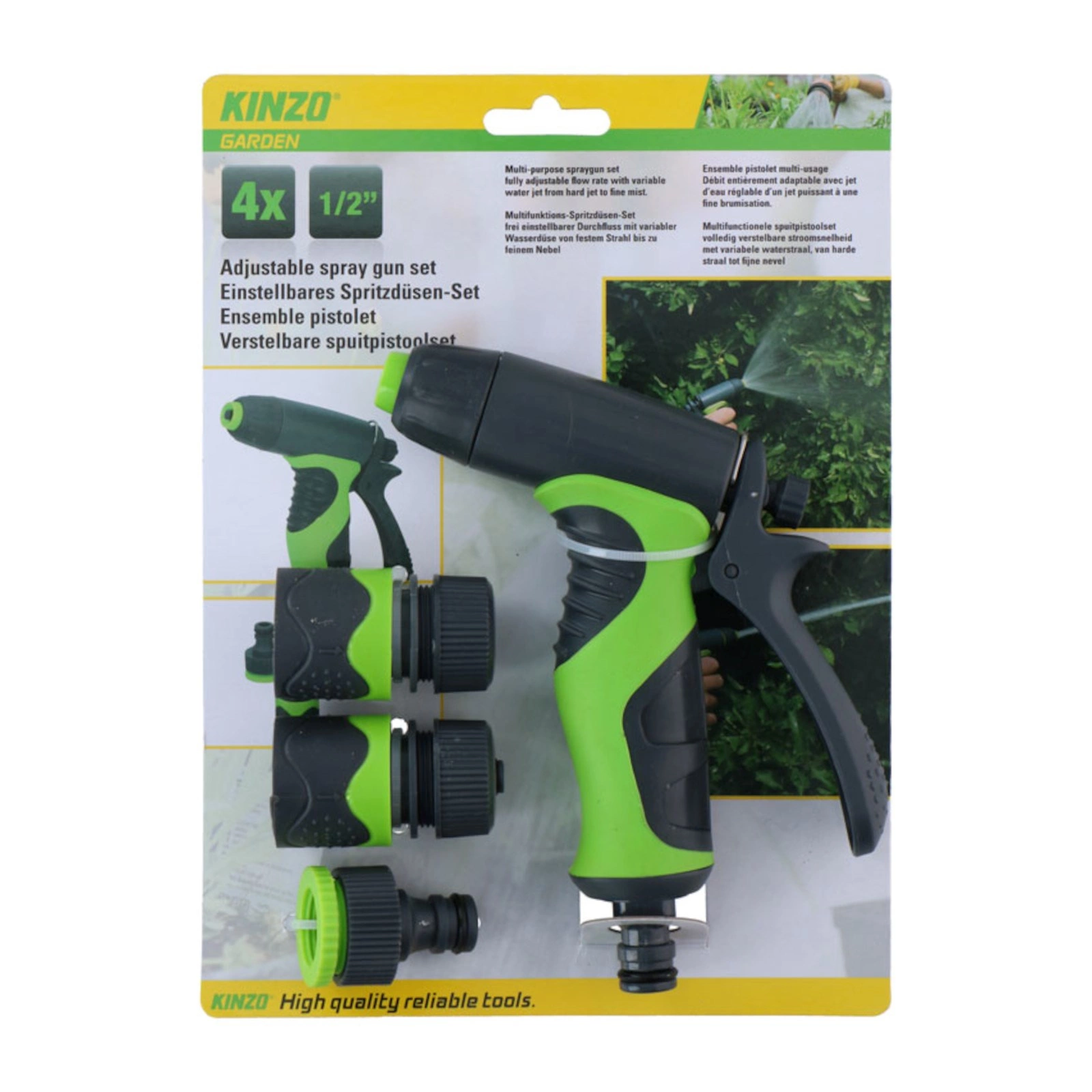Zestaw do podlewania ogrodu, pistolet z regulacją strumienia plus złączki Kinzo