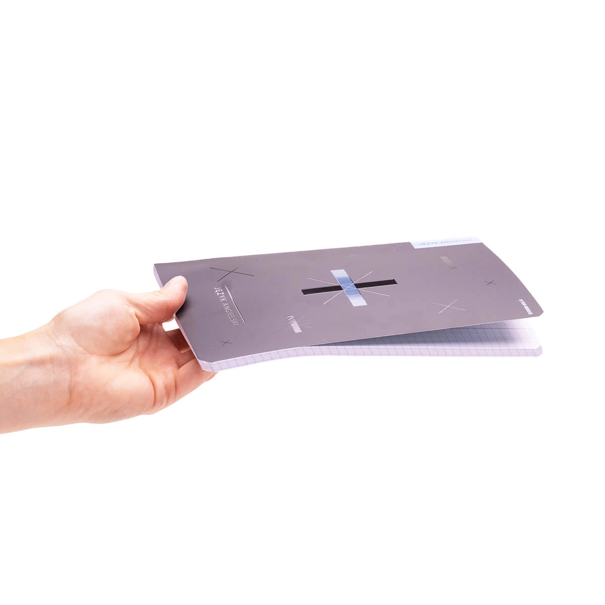 - Miękkie, kartonowe okładki są lekkie i nie obciążają plecaka